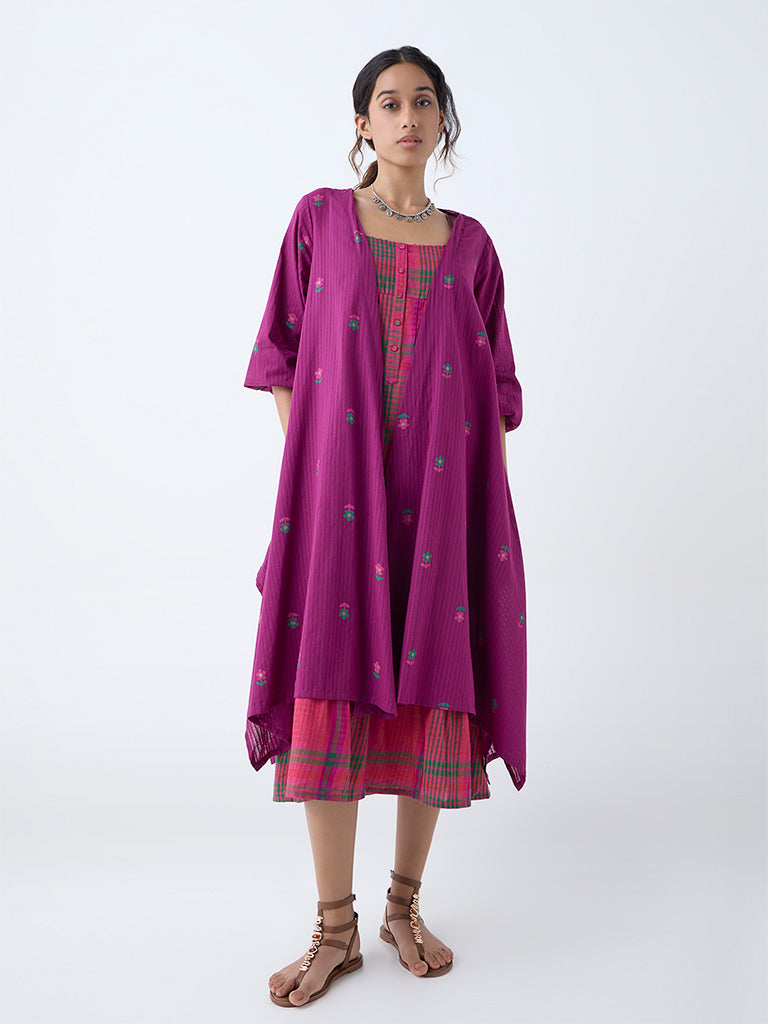 Utsa Purple Floral Embroidered Cotton Shrug