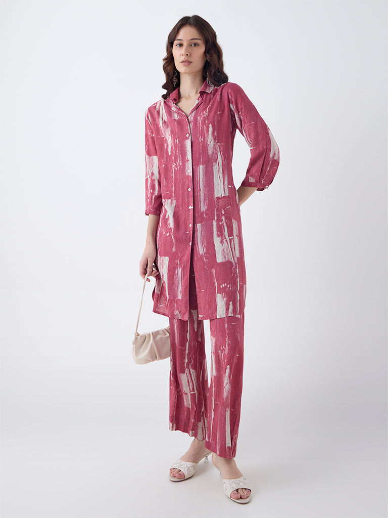 Infuse your ethnic wardrobe with a pop of artistry by investing in these red pants from Utsa. Created from a breathable fabric, they are defined with abstract motifs that bring visual intrigue, while an elasticated waistband with adjustable drawstrings ensures a tailored fit.