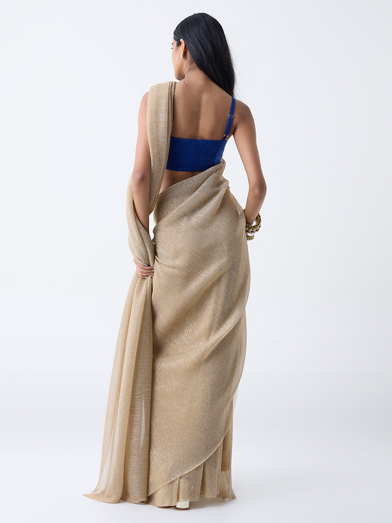 Vark Dark Blue Zari Embroidered Ethnic Blouse