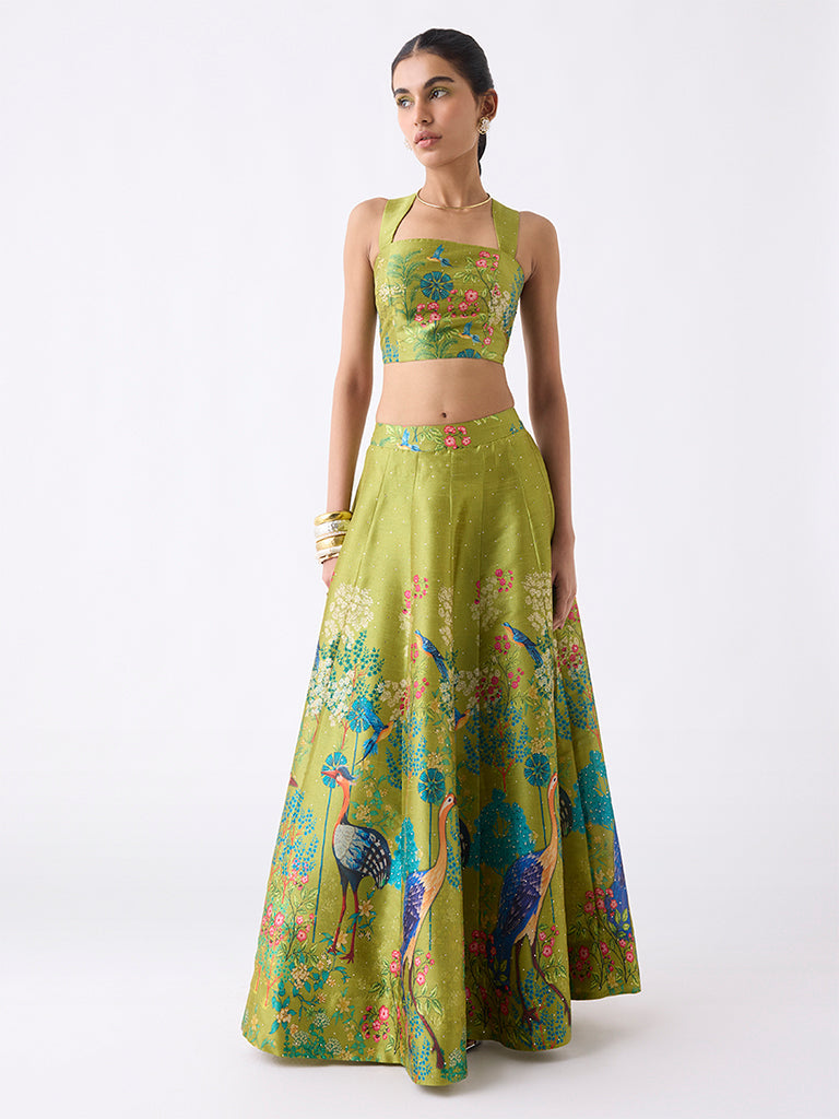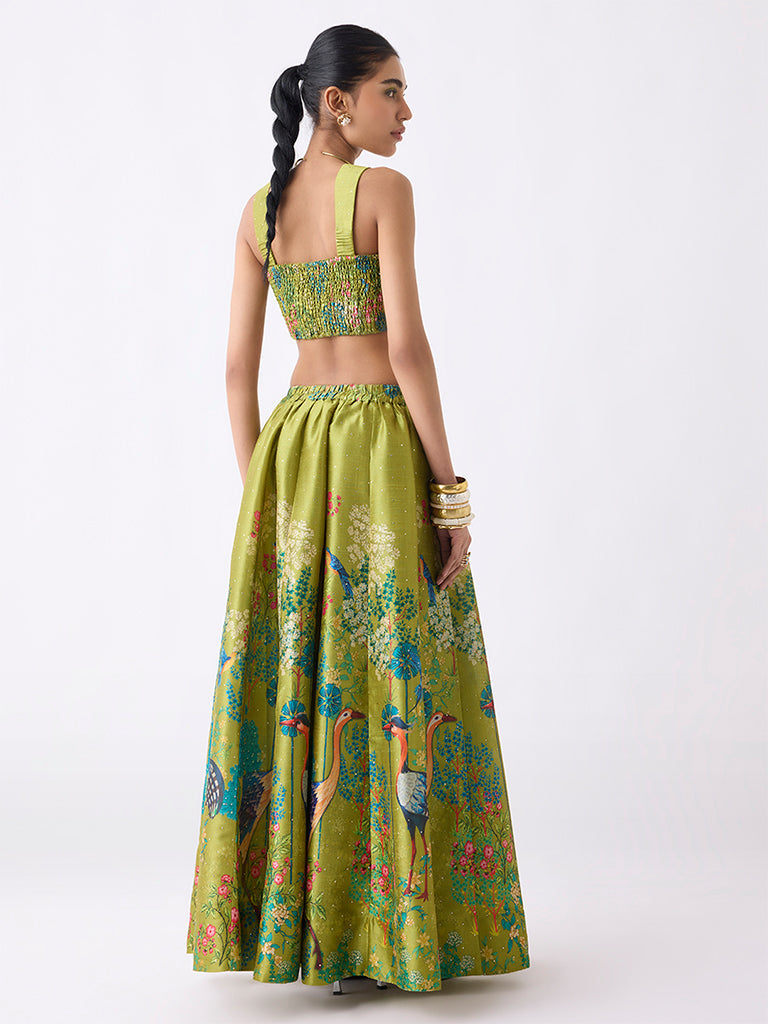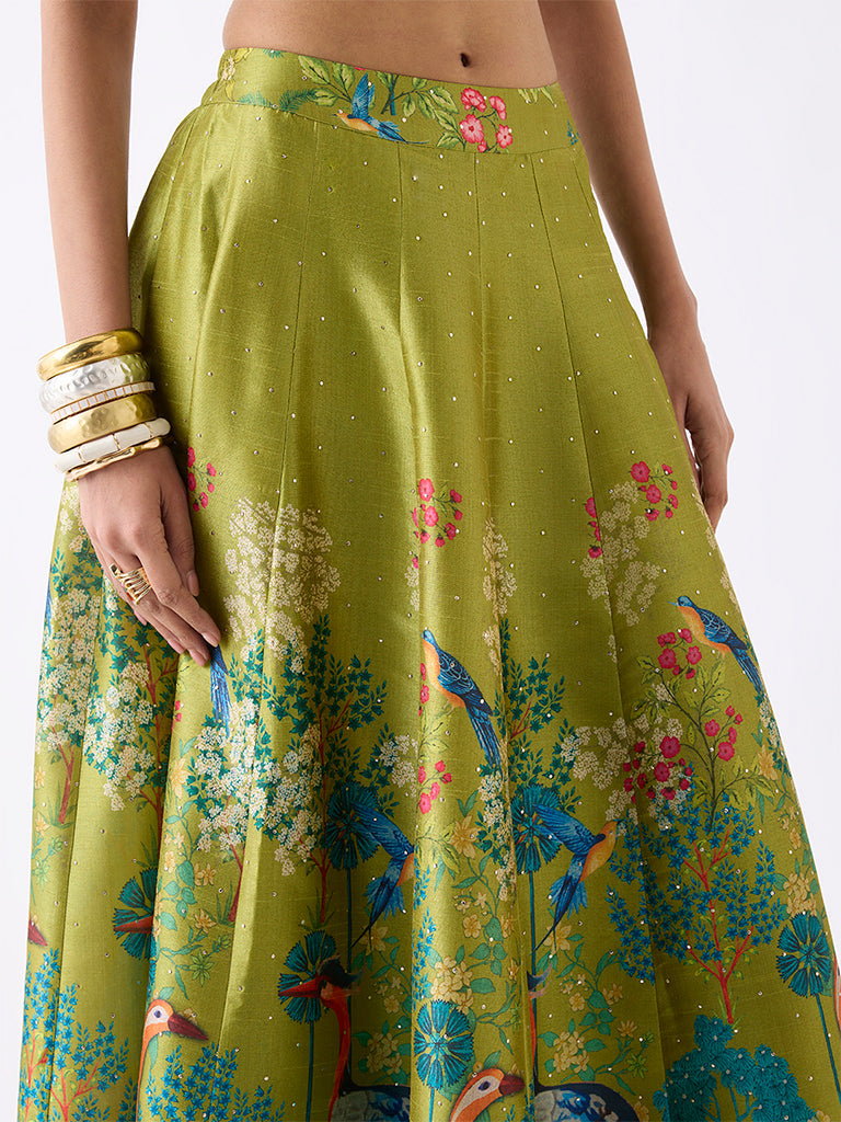 Adorned with nature-inspired motifs and delicate embellishments, this lime skirt by Vark captures the spirit of joyous occasions. A smooth elastic waistband and practical side pockets ensure comfort without compromising style, while its flowing silhouette pairs effortlessly with embroidered tops and kurtas alike.