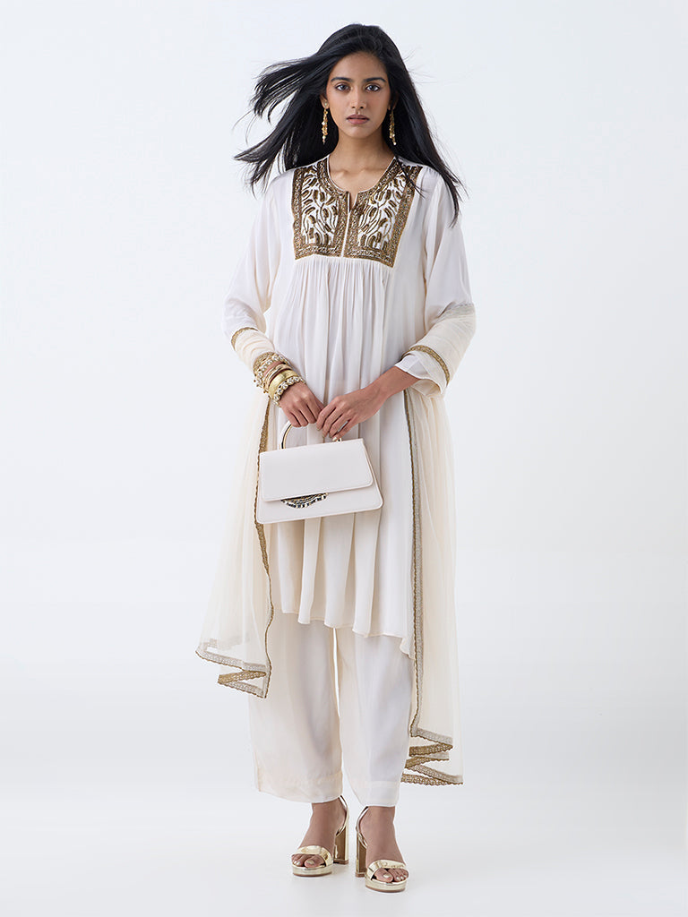 Vark Off-White Embellished A-Line Ethnic Set