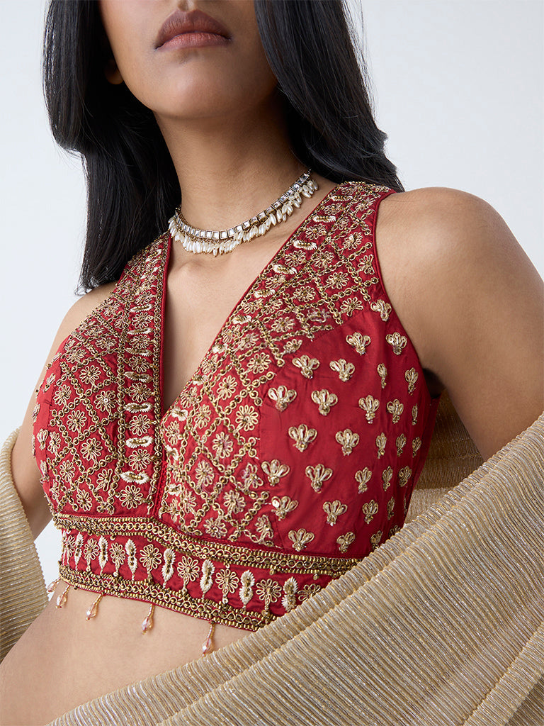 Vark Rust Floral Zari Embroidered Blouse