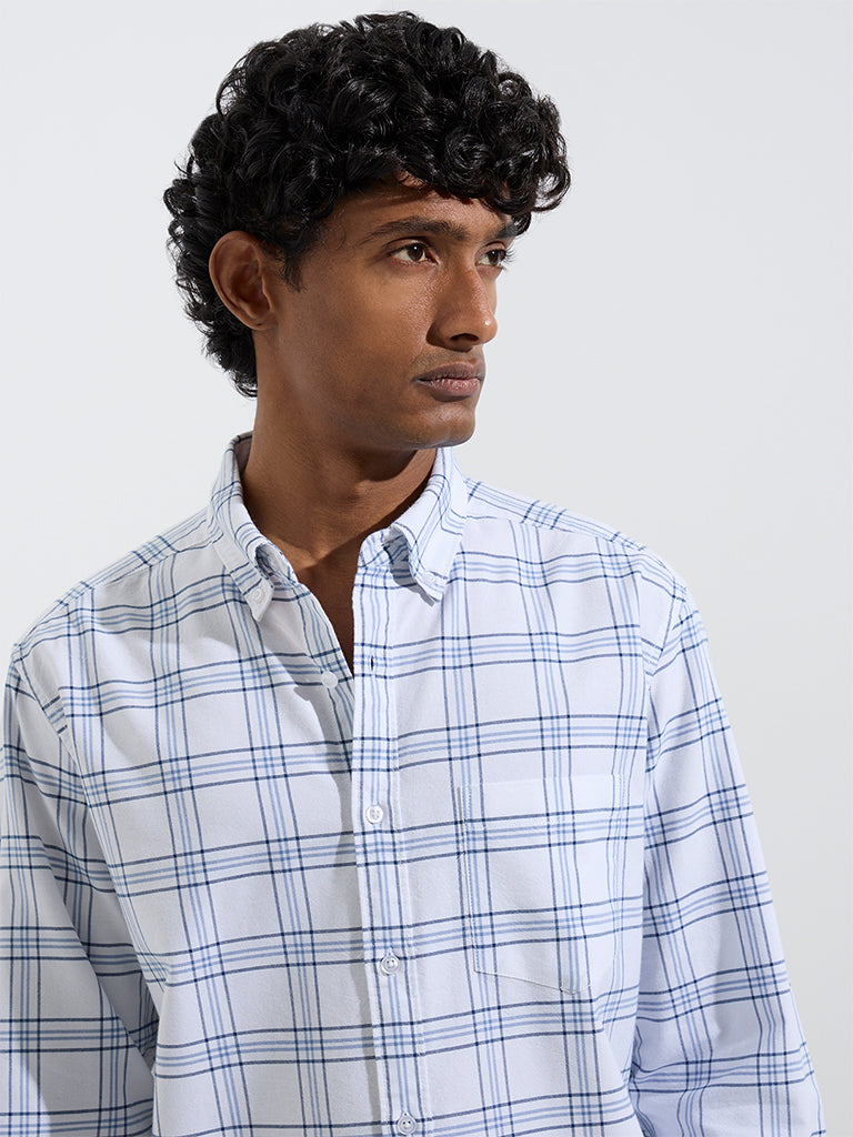 WES Casuals White Checks Design Relaxed-Fit Cotton Shirt