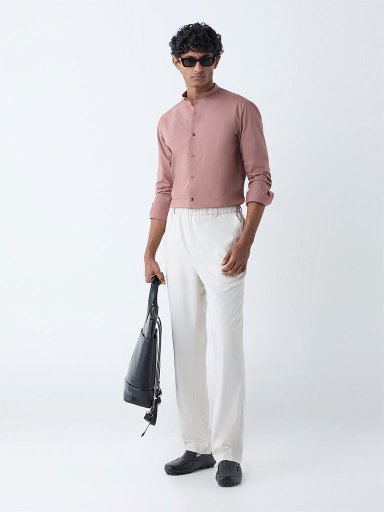WES Formals Dusty Pink Solid Ultra-Slim Fit Cotton-Blend Shirt