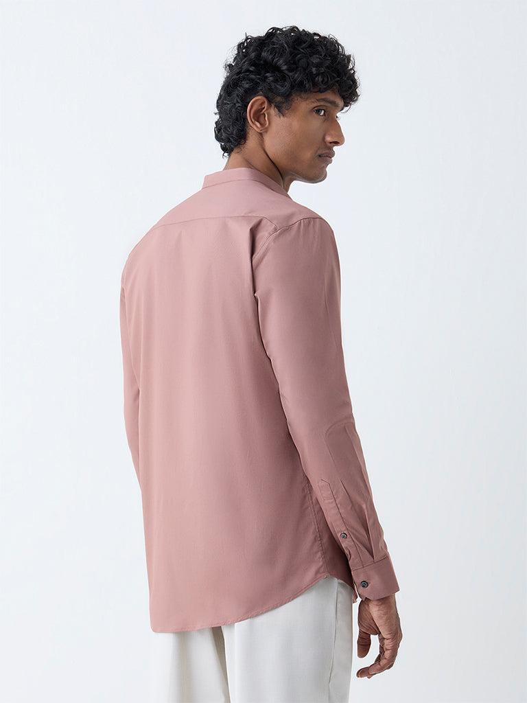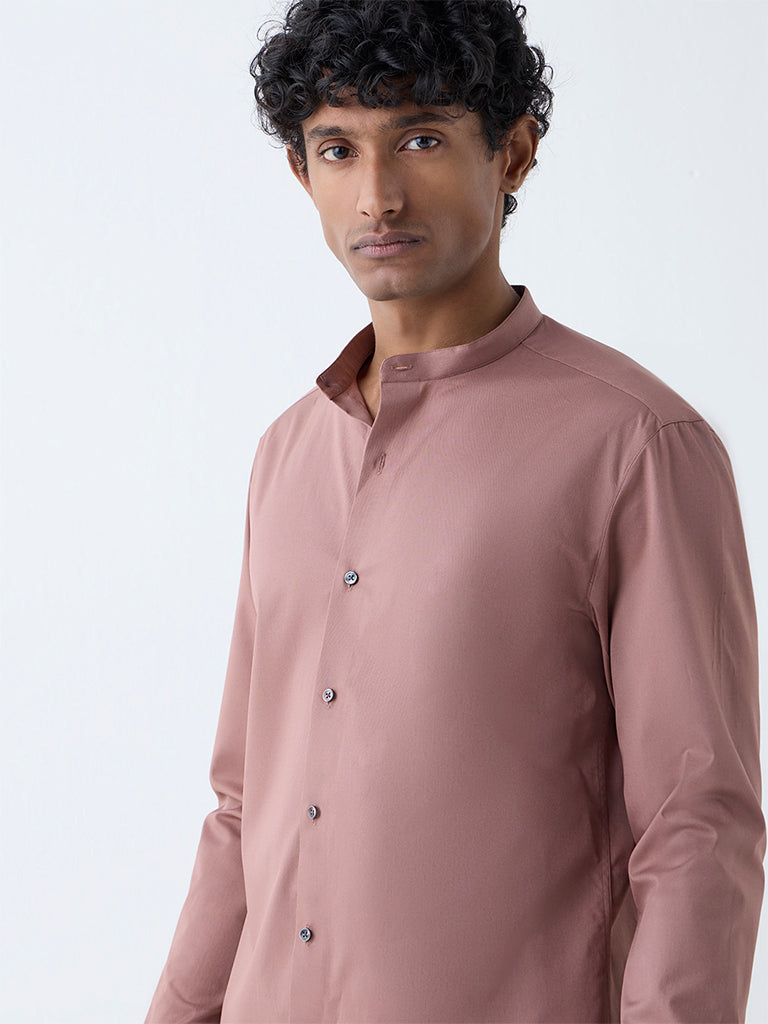 Bring a touch of modern sophistication to your professional edit with this dusty pink shirt from WES Formals. Tailored in an ultra slim-fit for a streamlined profile, it is designed with a mandarin collar, button placket, and full sleeves with buttoned cuffs.