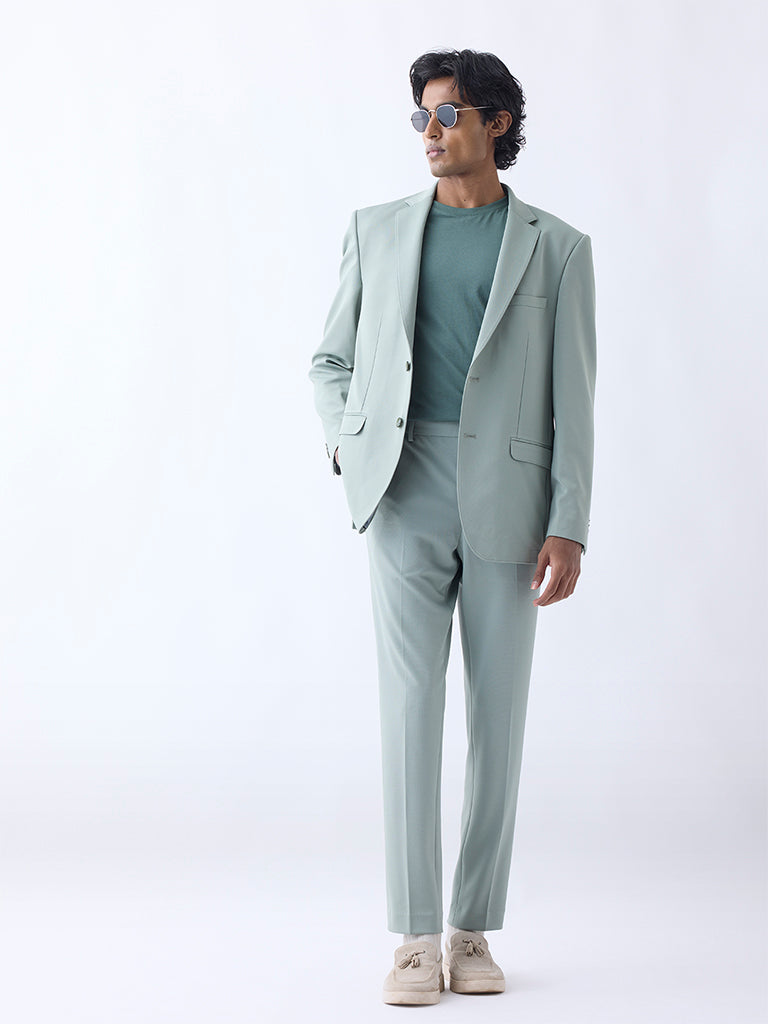 WES Formals Sage Slim-Tapered Fit Mid-Rise Trousers