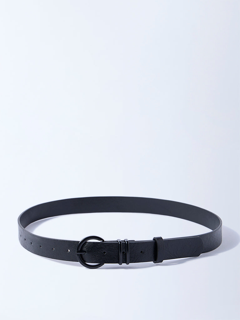 Westside Accessories delivers a black belt that feels equal parts timeless and on-trend. Defined by its round metallic buckle, the design adds a polished accent to both tailored and casual looks. The textured finish lends depth, while the classic black shade ensures maximum versatility. Whether styled with sharp trousers or cinched over fluid layers, this piece is crafted to be the understated hero of a modern wardrobe.