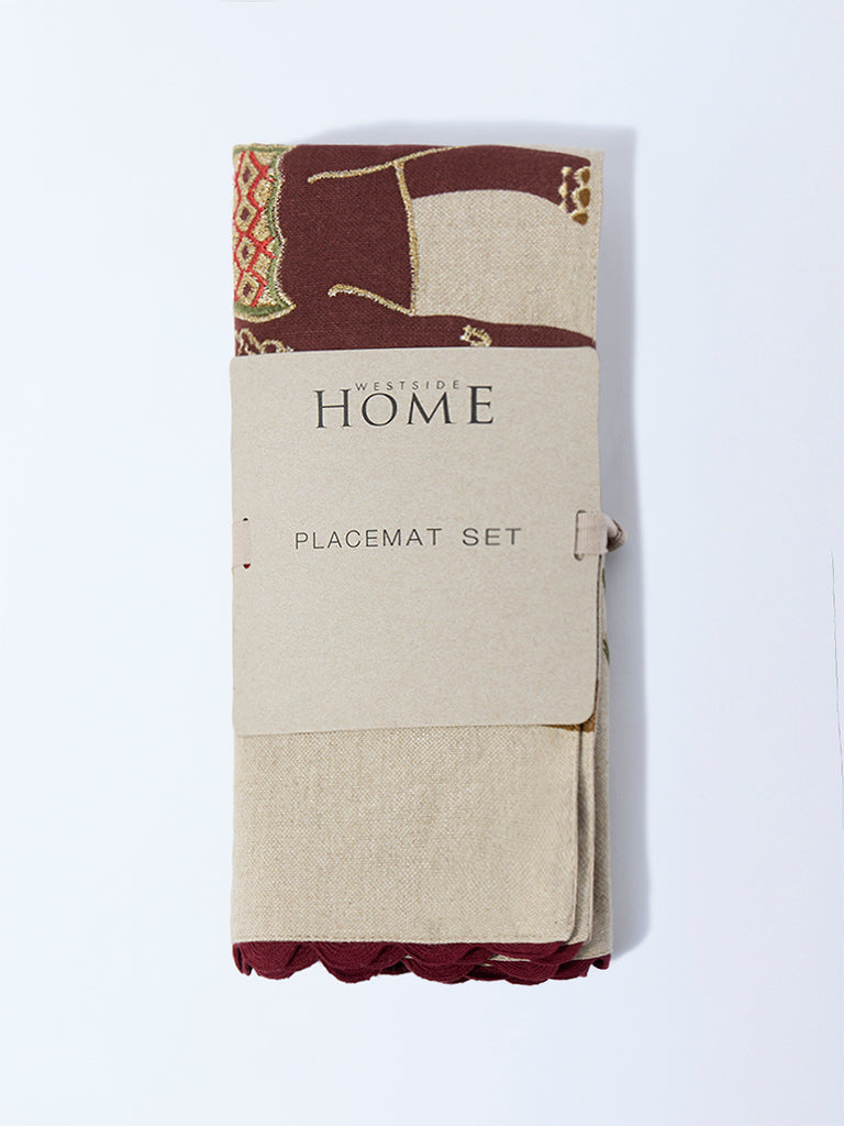 Westside Home Beige Elephant Design Placemats (Set of 4)