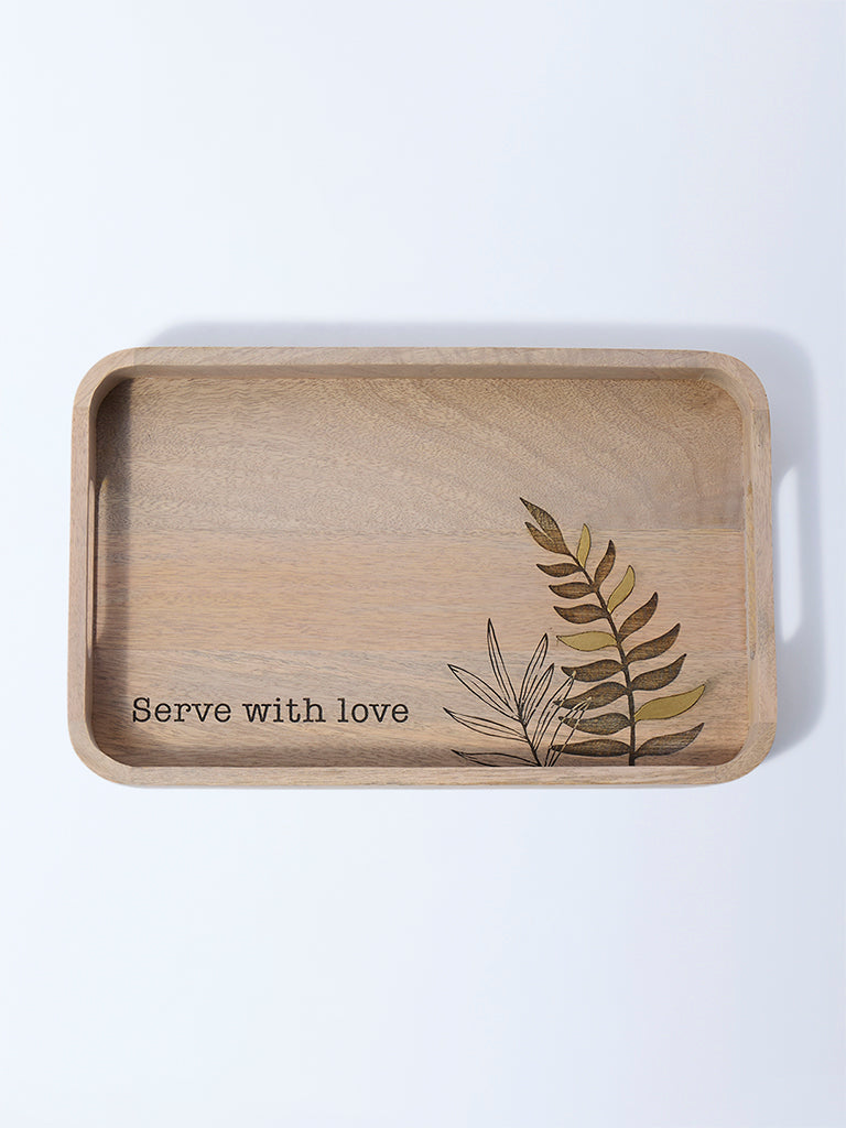 Westside Home Beige Leaf Design Wooden Serving Tray