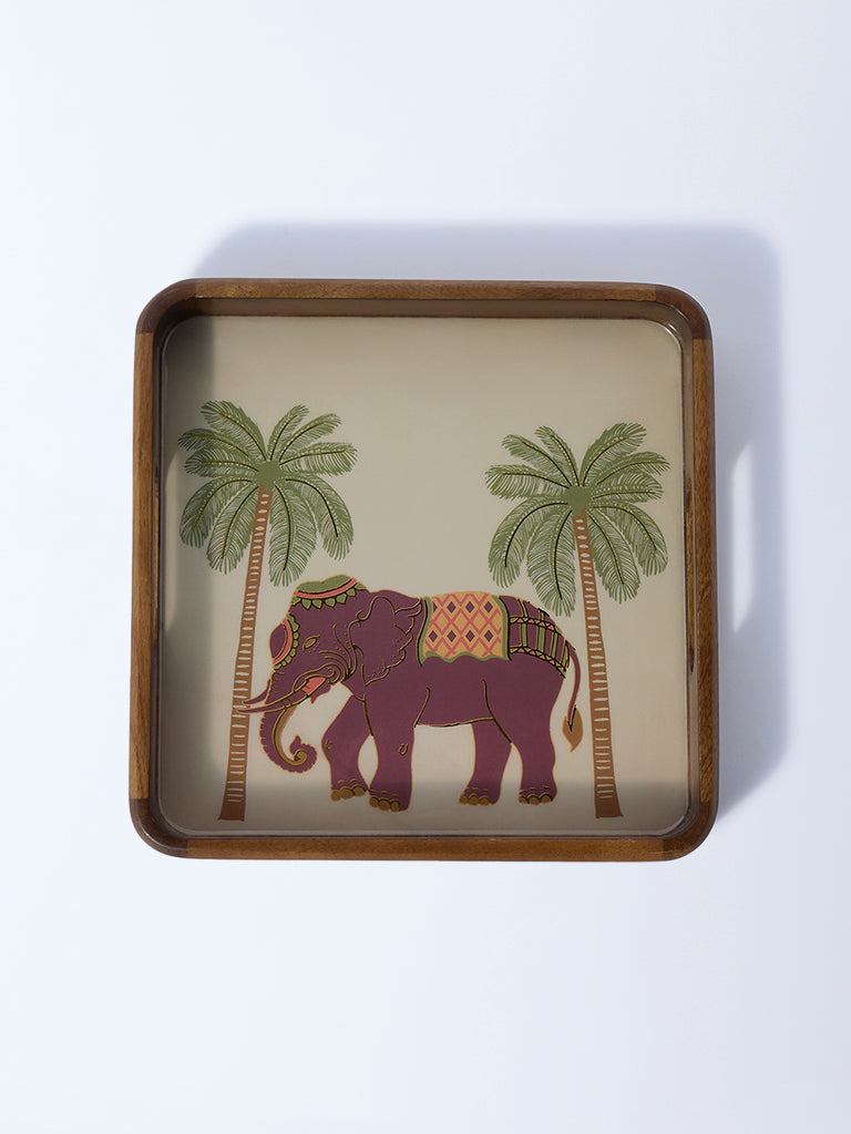 Perfect for gatherings and generous servings, this large brown wooden tray from Westside Home combines craftsmanship with convenience. Adorned with a traditional elephant motif, it celebrates heritage-inspired design while staying modern in function. Two sturdy handles make it easy to carry, whether you are serving guests or styling it as a decorative accent. A tray that balances utility with elegance, designed to leave an impression at every occasion.