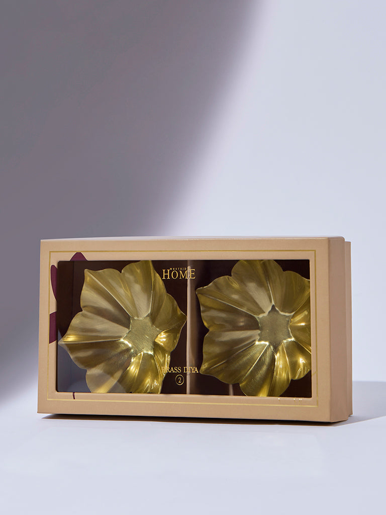 Westside Home Gold Lotus-Shaped Diyas (Set of 2) - Festive Season Gift