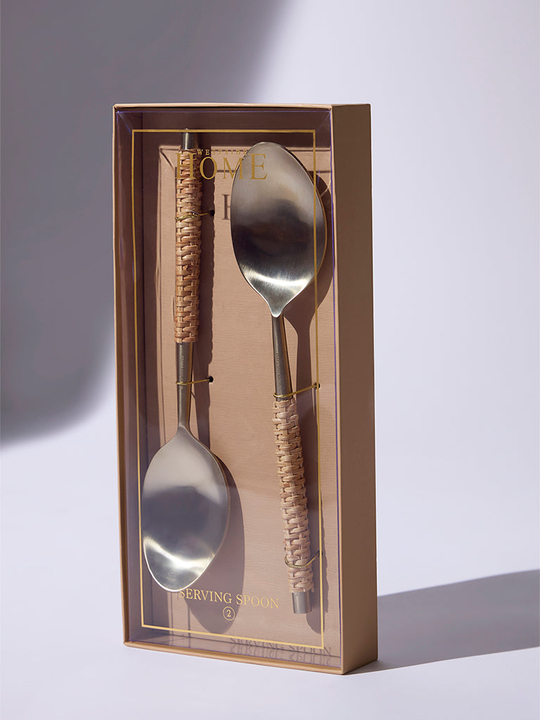 Westside Home Gold Rattan Weave Serving Spoons (Set of 2) - Festive Season Gift