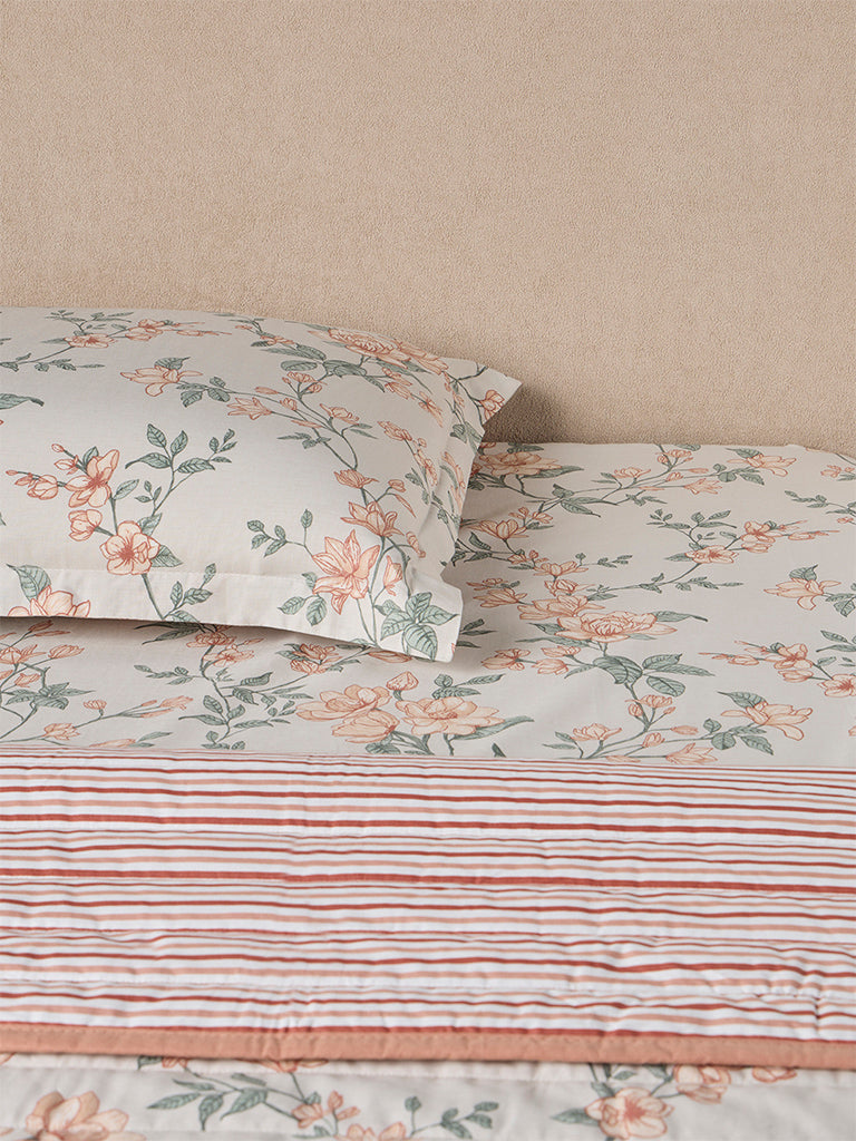 Brighten your restful corner with this reversible quilted single bed comforter from Westside Home. Styled in a lively orange palette with foliage patterns on one side and a complementing design on the reverse, it gives you the freedom to switch up your look with ease. Quilted for softness and warmth, it makes bedtime feel indulgent while adding a vibrant personality to your room. Whether layered for cozy nights or styled for relaxed mornings, it brings comfort and character in equal measure.