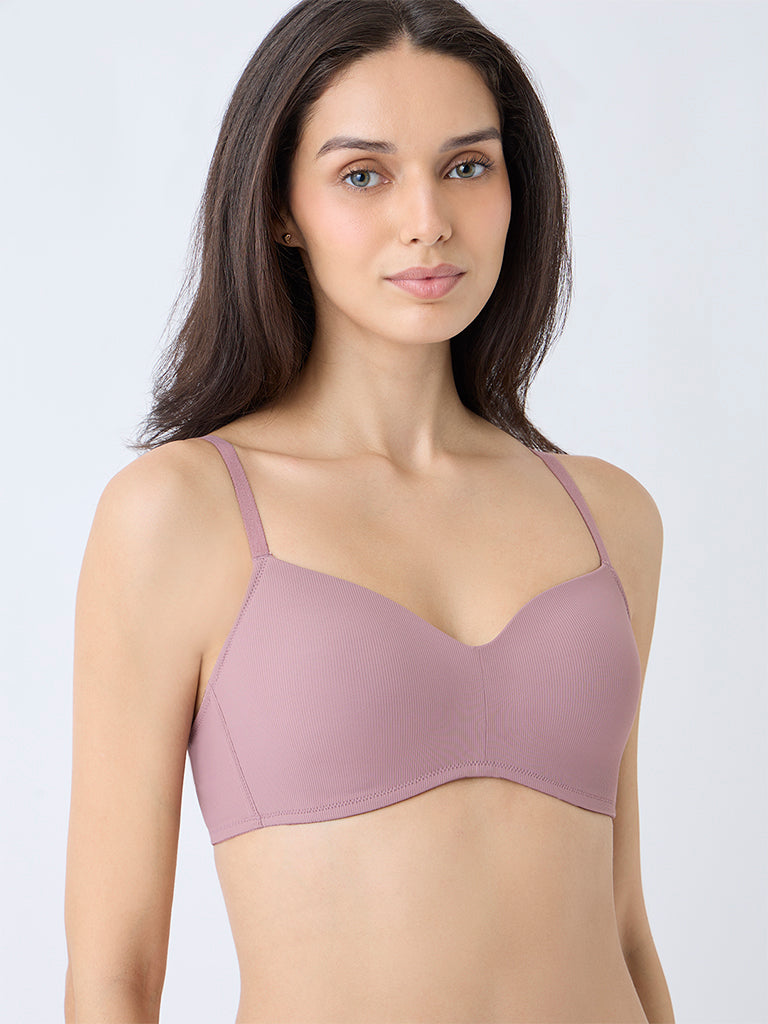 Wunderlove Dusty Pink Ribbed-Textured Padded Bra