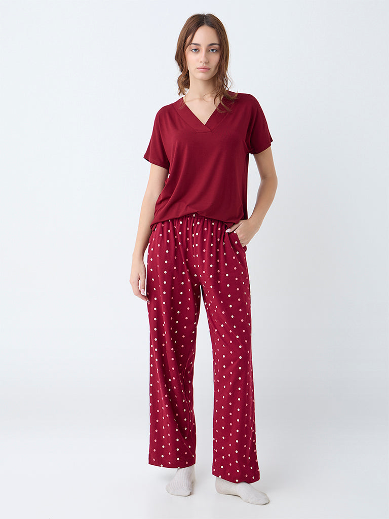 Redefine relaxed sophistication with this maroon top from Wunderlove. Featuring a flattering V-neck and relaxed dolman sleeves, it effortlessly balances comfort with polished style. Lightweight and versatile, it pairs seamlessly with your favourite bottoms, whether for casual outings or refined daytime looks.