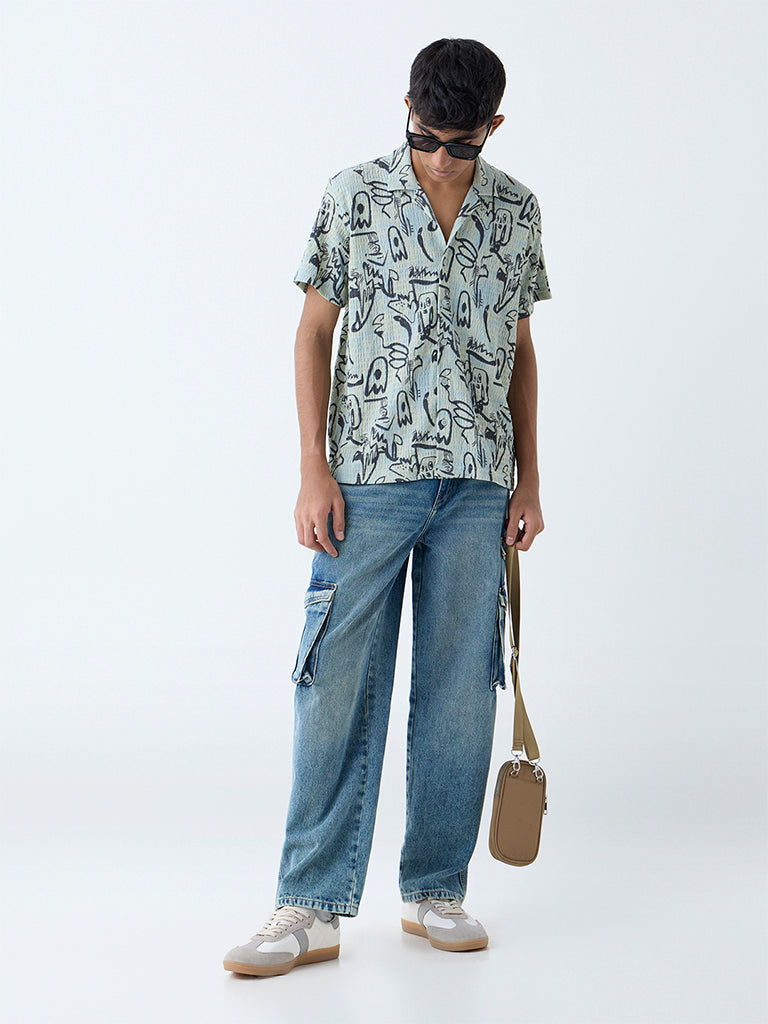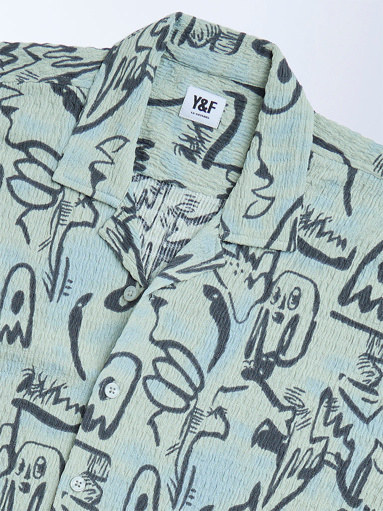 Y&F Kids Sage Abstract Detailed Resort-Fit Shirt