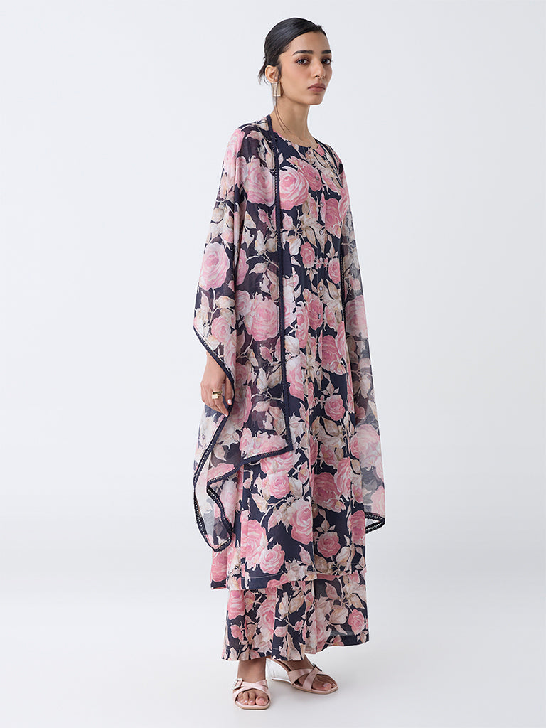 Wrap yourself in delicate charm with this black dupatta by Zuba. Adorned with a soft floral motif, it captures effortless femininity, while the hemline is accented with intricate crochet trims for a touch of artisanal elegance.